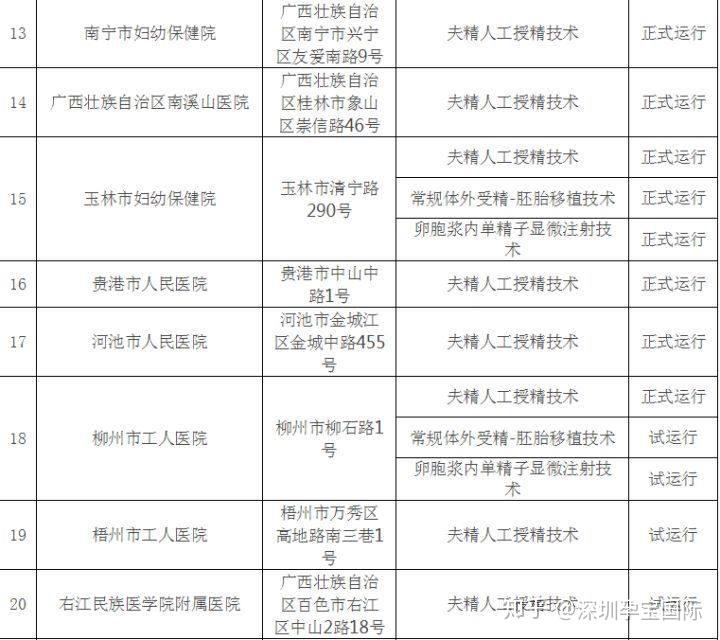 可以看到,很多醫院都是只允許開展人授業務,少數可以做常規試管嬰兒項目的醫院都是集中在廣西省會南寧和柳州等經濟較好地區,。