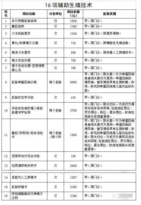 宮腔內人工授精術、生殖試管胚胎移植術等16項涉及人群廣、安全可靠的輔助生殖技術項目,均將納入醫保甲類報銷范圍。