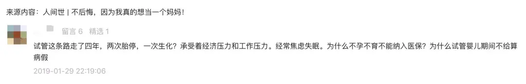 試管這條路走了四年,兩次胎停,一次生化,承受著經(jīng)濟(jì)壓力和工作壓力。經(jīng)常焦慮失眠,為什么不孕不育不能納入醫(yī)保?為什么試管嬰兒期間不給算病假。
