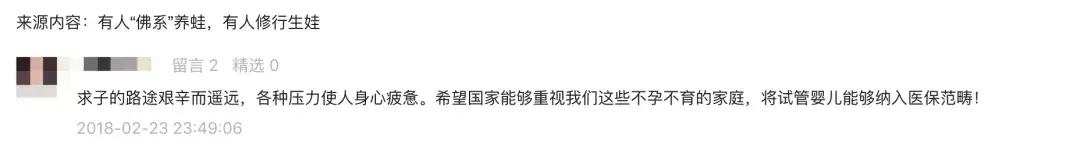 求子的路途艱辛而遙遠(yuǎn),各種壓力使人身心疲憊。希望國家能夠重視我們這些不孕不育的家庭,將試管嬰兒能夠納入醫(yī)保范疇!