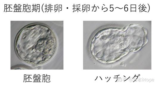 通常為受精后第5-7天的胚胎,此時胚胎內部已經出現聚集細胞塊和空腔。(Day5-7)。也有一些胚胎生長狀態較好,在第5-7天已經出現孵化狀態(圖2,右側)