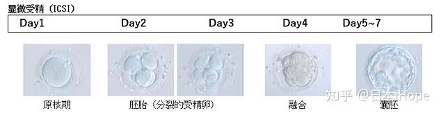 通常是受精后第3天的胚胎,胚胎內部處于8分裂或者16分裂的狀態(圖1,Day3)。也有醫院移植受精后第2天的胚胎,胚胎內部處于4分裂狀態(圖1,Day2)。