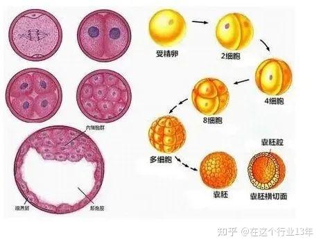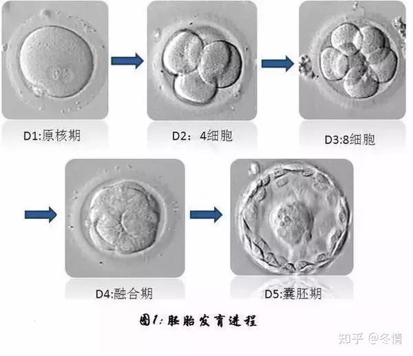 一般來說,當卵子成為受精卵后開始分裂,第1天會分裂成2細胞,第2天會分裂成4細胞,第3天會分裂成6-8細胞,第4天形成桑葚胚,第5天形成囊胚,下圖為胚胎發育的過程。