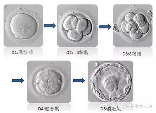 卵子在受精后會快速分裂增殖,和普在第五天左右,通胚胎移同胚胎會發育到囊胚階段,胚胎已經形成滋養外胚層、內細胞團以及囊胚腔,此時胚胎已經包含了七十五至一百個細胞。滋養外層將會形成臍帶、胎盤和胎膜,而內細胞團則會發育成胎兒。