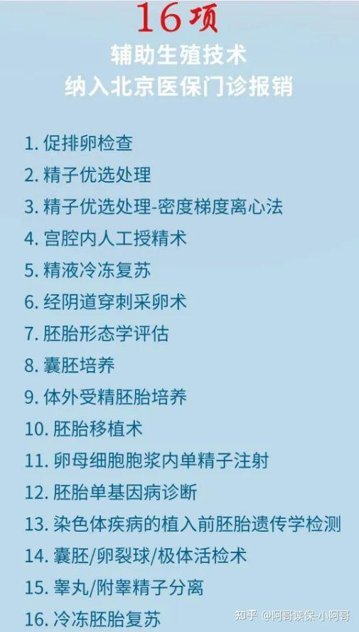 促排卵檢查、宮腔內(nèi)人工授精術(shù)等在內(nèi)的16項(xiàng)治療性輔助生殖技術(shù)項(xiàng)目是可以報(bào)銷部分的,而且按北京醫(yī)保門診甲類報(bào)銷。(詳見下圖)