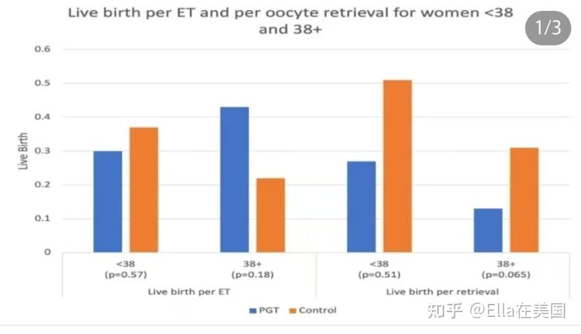 這篇文獻里指出,與對照組(31%)相比,PGT-A組大于38歲的年齡組(13%)每次取卵的累計活產(chǎn)率要低于沒有經(jīng)過PGT測試的。