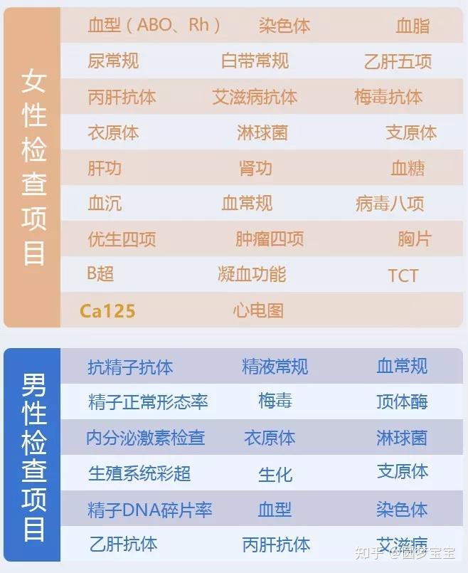夫妻進周前全面體檢的項目如下: