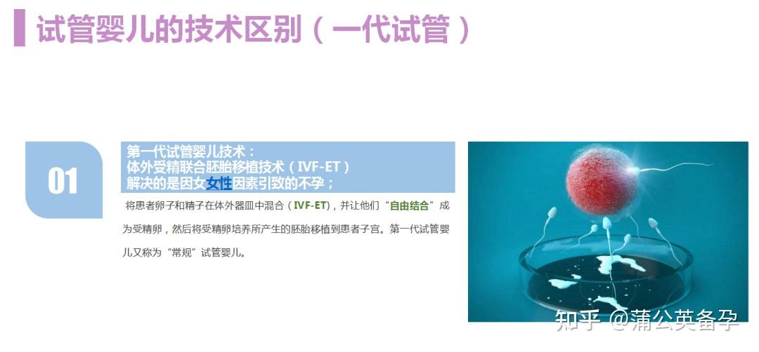 一代試管是將患者卵子和精子在體外器皿中混合(IVF-ET),并讓他們“自由結合”成為受精卵,然后將受精卵培養所產生的胚胎移植到患者子宮